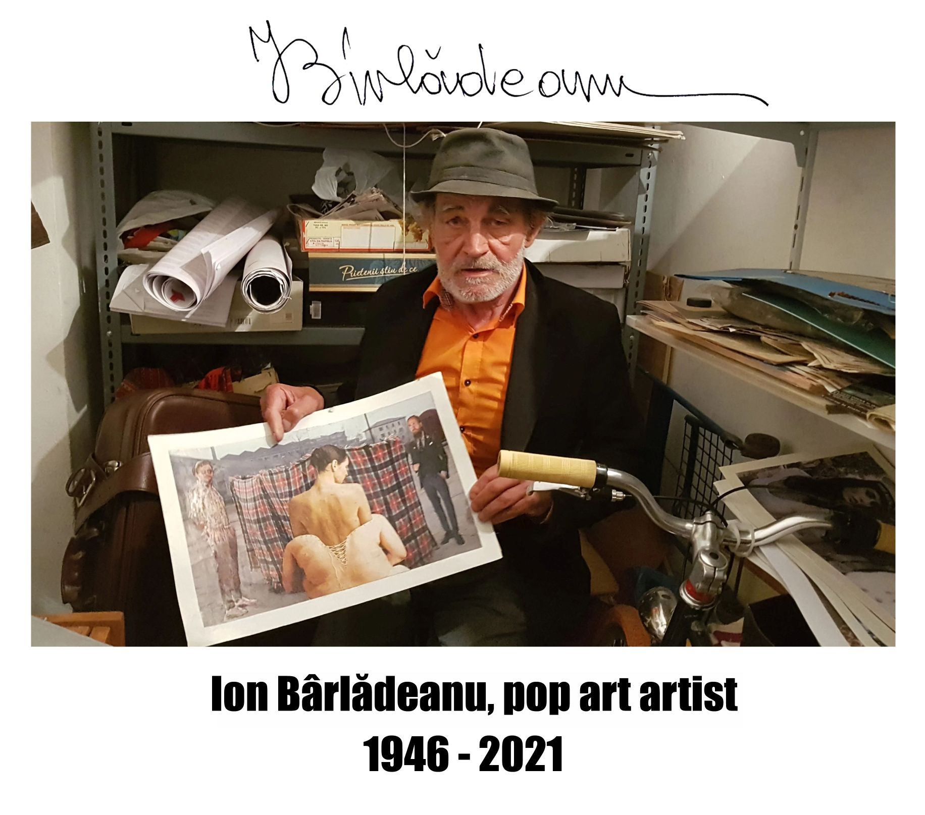 October 19 will remain a sad day for me because the artist Ion Bârlădeanu died today, who through his collages influenced my destiny and made me choose pop art as a dimension of artistic expression. In fact, the documentary about him (“The World According to Ion B.“) revealed to me the sad and true facets of the world we live in. You should know that the Romanian pop artist Ion Bărlădeanu died poor, just as he was in 2008 when he was discovered by the contemporary artist Ovidiu Feneș, the one who recommended him to the owner of the H’Art Gallery in Bucharest.