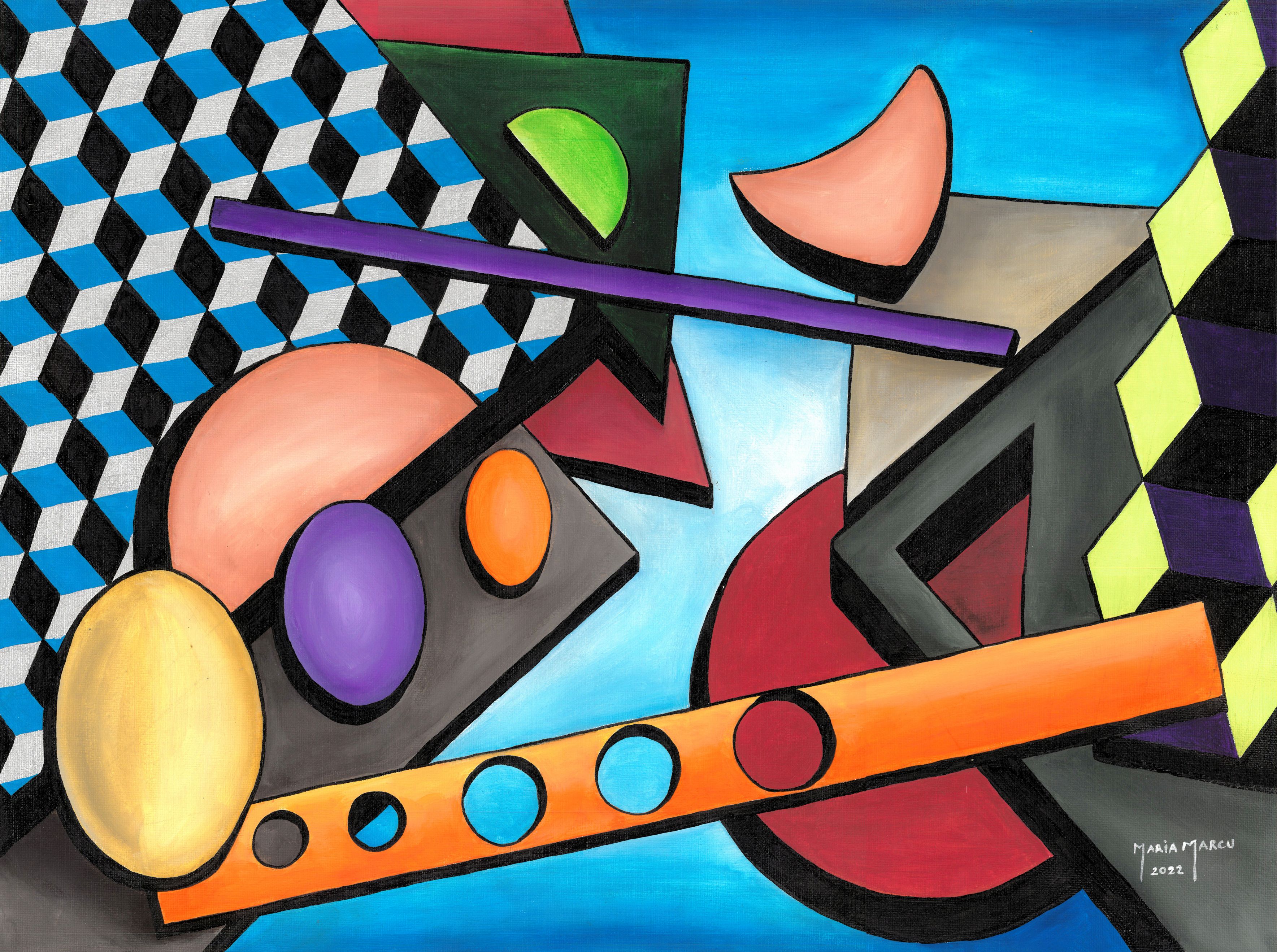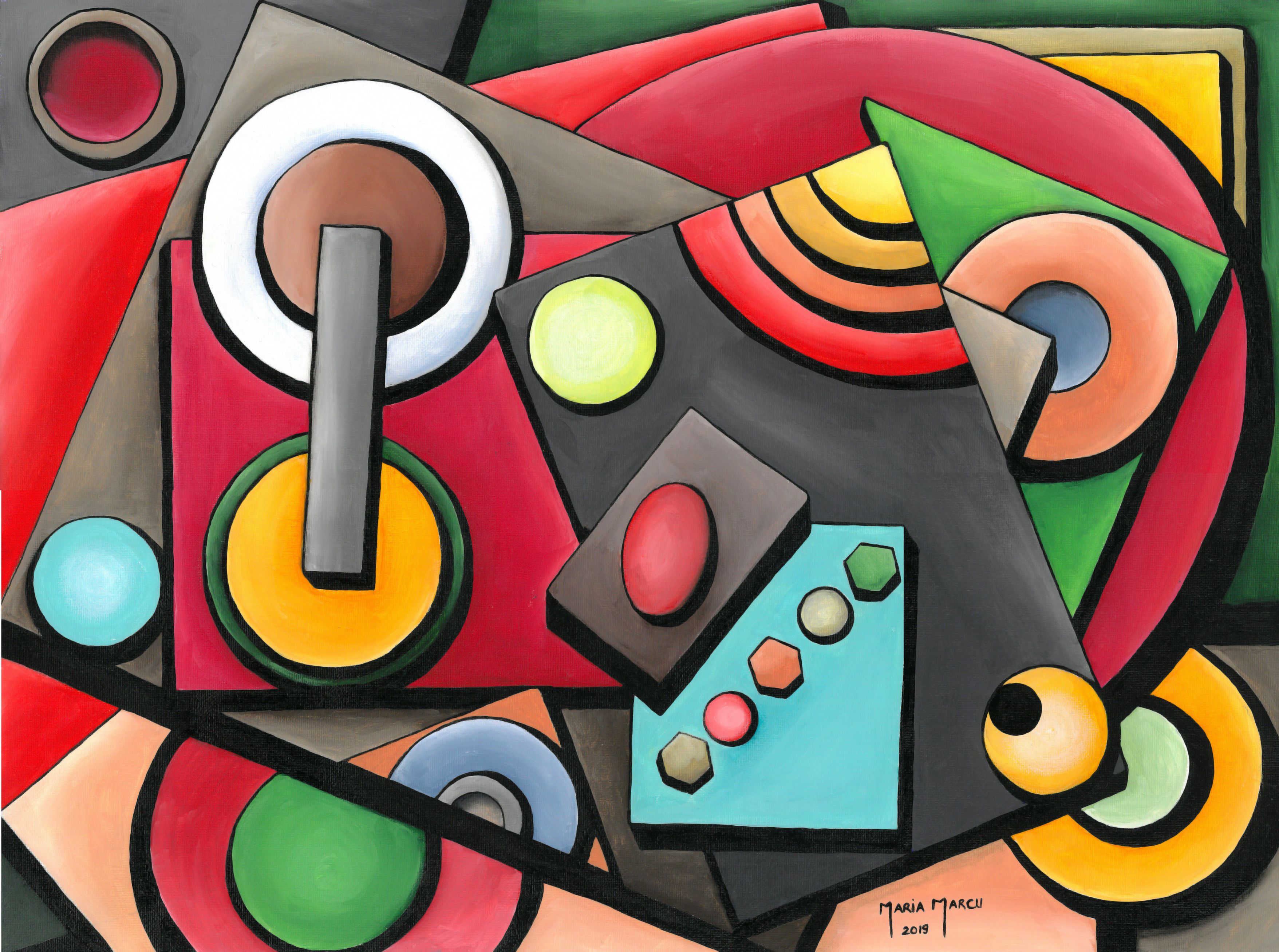 The three works in acrylic on canvas were made between 2018 and 2022 and are reunited under the title “Divine Trilogy”. I tried to recompose in a geometrically-abstractionist way my own vision of “the events of the world that have not yet happened“. An atmosphere in which the three parts define the world as we discovered it: chaos, pattern and order. A cycle that continues endlessly, evolving with all living beings, amazing us every time through the strategy of Mother Nature to order the chaos of matter. We don’t choose our place in the world, we just try to find it.