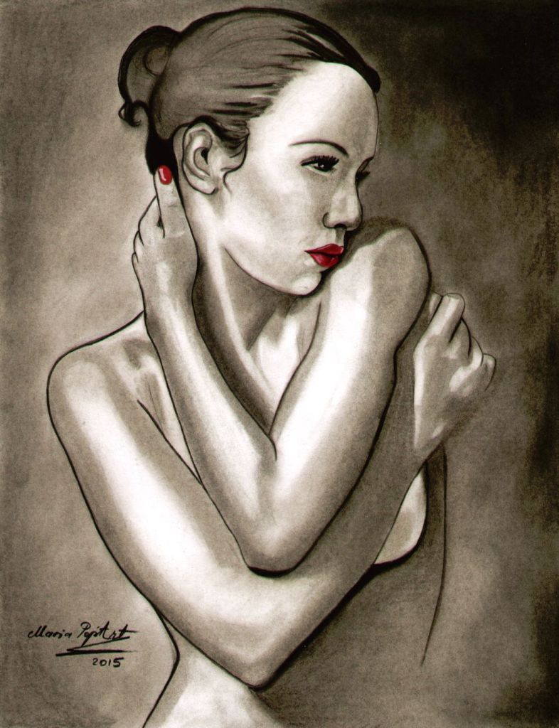 Title 2: ”Loving me” (charcoal, watercolor & chalk pastel with varnish protection on paper 200gsm)